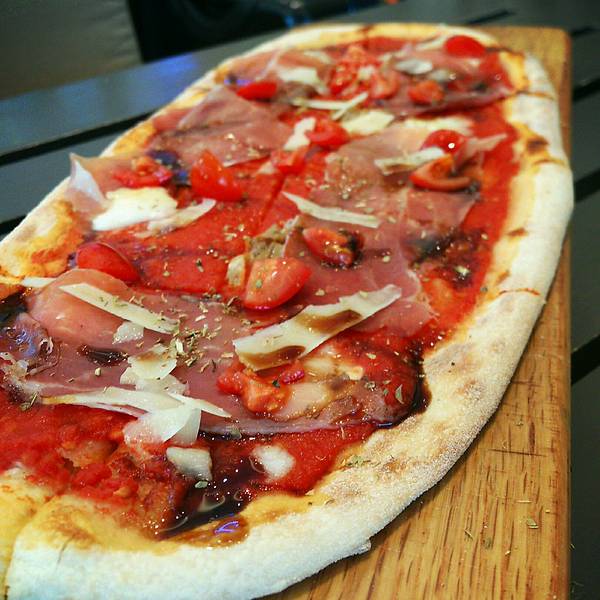 朋友团购的代金券 来了看到门口招牌 周一招牌披萨半价 周二来的妹纸表示不淡定了 招牌披萨等了差不多半小时 端上来的时候占了桌子一大半 8种口味 大家互相分分尝尝 吃的不亦乐乎 薄底披萨饼皮脆脆的 cheese量也蛮多 出门的时候看有对情侣两个人也点了一只,佩服的。四个人分分才差不多吧 混合蘑菇意式烩饭 半熟的烩饭 我还蛮习惯这种口感的 蘑菇香 奶油香和丰沛的汁水 水牛马苏里芝士 朋友点的 说是比牛肉价格还要高的食材 口感比一般的芝士清淡一点 热量应该也更低一点吧 鱿鱼圈 炸到酥酥脆脆的鱿鱼圈 蘸着蘸酱一起吃~ 香蕉奶昔 说是里面有谷物的 开始没喝到 原来沉淀在底下 要搅拌均匀再喝才可以 烤澳洲羊排配黑松露汁 羊排烤的外酥里嫩的 差不多5-6分熟的样子 吃口蛮好 环境蛮好的 一进门就闻得到百合的清香