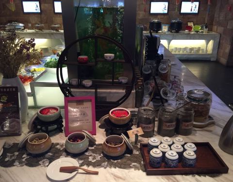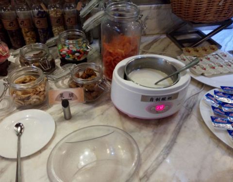 餐厅位于酒店一楼,装修很有风格,我是住酒店去吃的自助早餐,因为刚过了国庆长假,餐厅里就几个客人,早餐住店客人38元一位,会员28元,精致,东西还是挺全的,咖啡豆浆,煮蛋煎蛋,面条、酸奶,杂粮水果,最爱的是现磨的各种芝麻粉,加上开水,放点糖,很不错,先做的面条也是口味赞的,各种蔬菜根据自己需要添加,小伙伴们吃的都很满意。