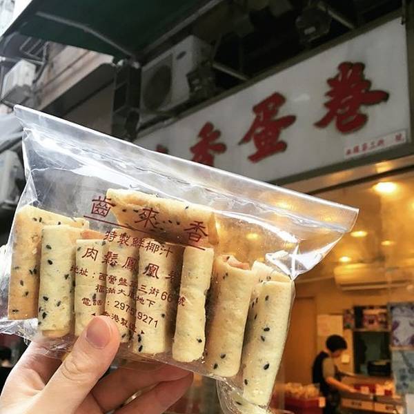 香港的德成号和齿来香都是相当有名的蛋卷店,一直都是坚持以人工手做蛋卷,自然的蛋香味是现在的连锁饼店所做不出来的味道。齿来香的最强口味是椰汁凤凰蛋卷。要买的话,中午之前要去,否则当天卖完了就没了。但是相对于德成号来讲,齿来香还是更容易买到一些。