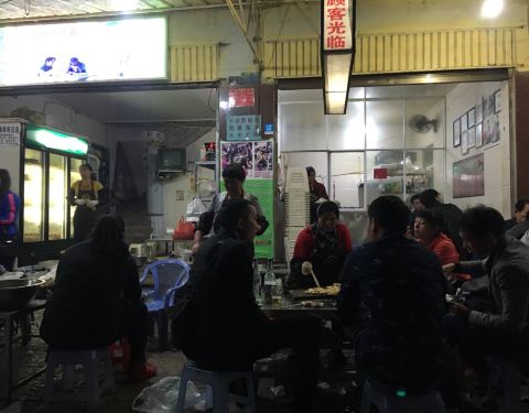 蛮有名气的一家店,因为谢霆锋十二道锋味过来拍摄过,墙上还挂了照片,生意很好,有烧烤,有烤豆腐,点了一些烧烤,牛肉还不错,味道还算过得去吧,没有太好吃。