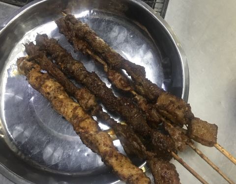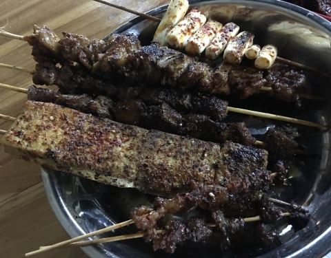 ...牛肉和羊肉,一大串牛腱子肉只要5块钱,可以说是相当地物美价廉,虽说上菜有点慢,但还是值得一来的