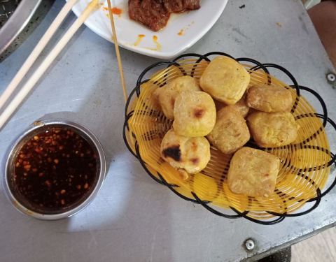 烤的糯米藕和草芽算是本地特色,感觉与四川的烧烤没什么差别,还不如去街边的小摊上烤当地的小豆腐块...