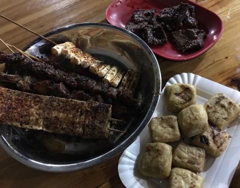- 烤的糯米藕和草芽算是本地特色,感觉与四川的烧烤没什么差别,还不如去街边的小摊上烤当地的小豆腐块...