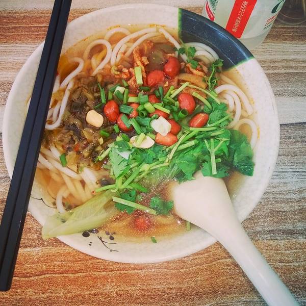 看到马路对面,沙县小吃还开着门,万分鸡冻啊!点了葱香拌面(比北京的很多店铺分量足)、牛杂汤面、鸭汤、鸡汤,饱饱的,返回酒店大堂。办理入住,很顺利,哪怕是预计在网上付了全款房费,也要交每天500元的押金...