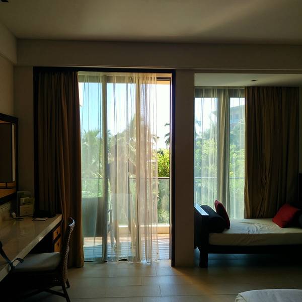 不推荐1层和2层。↑↑↑ 三层园景房阳台,只能看到椰树。↑↑↑楼下泳池,不要觉得这样看,很干净