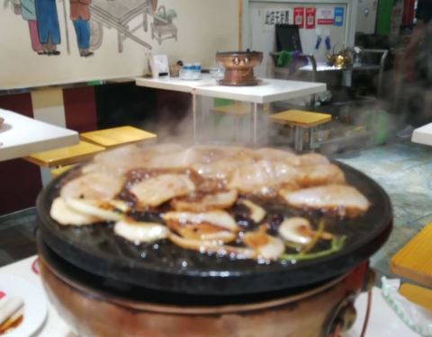 夏天去的,所以店里人不多,藏在胡同里的小店面,其实还挺容易走过。谋点评上有团购,倒也是实惠的很,牛羊肉五花肉龙利鱼和配菜白洋葱都很好吃,鱿鱼有点腥,建议最后烤。夏天吃请做好流汗的准备。