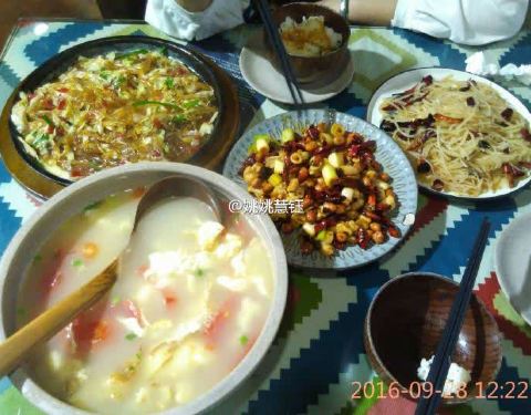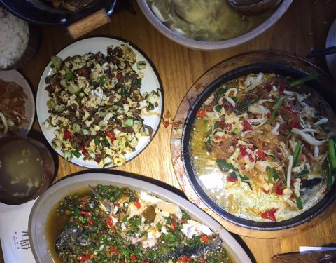 日本豆腐煲 金沙牛肉 农夫过水鱼 翻砂豆炒拆骨肉 玉米烙 铁板水晶粉 这些菜都很不错