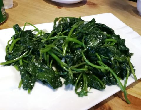 清蒸石斑鱼。还不错,鱼很新鲜,不过咸味不足,吃多了有点腻。