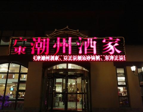 去了趟宝坻温泉城,住了两天。住在酒店里,吃饭当然很贵,还要收15[%]的服务费,晚上我们开车找了半天,找到了潮州酒家,外表看上去很普通,里面略显豪华,看了菜单品种挺多的,价格不贵,吃饭人挺多,一楼大厅散...