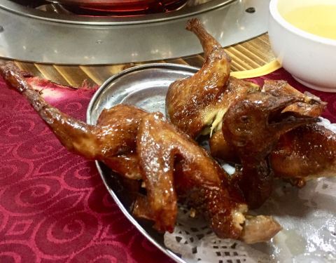 很多年的老店,听口碑过来试试。 口味: 乳鸽是必点,刚出台趁热吃,味道腌制刚刚好,皮脆肉嫩。可以原只吃,也可以叫服务员剪开。 油盐饭听讲也是必点,第一次煮焦了,今天店员说上次师傅休息了,但是今天的很淡,但是有锅巴很棒。 环境: 农庄里面算是干净卫生的了。 服务: 服务员很多是本地人,来吃的很多都是附近街坊,讲话比较接地气。