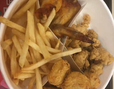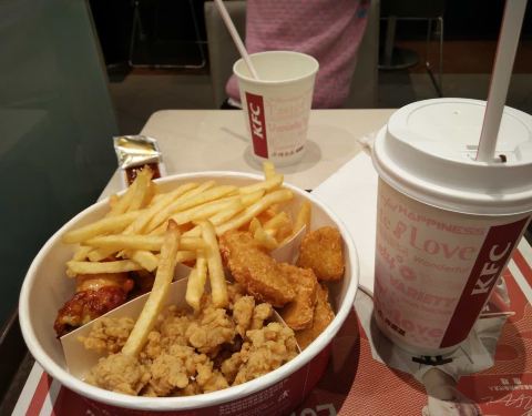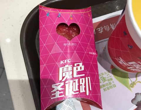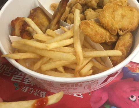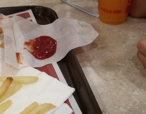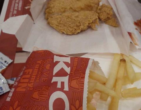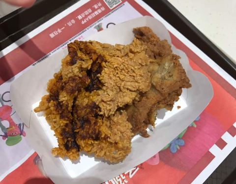 新的炸鸡还挺辣的,石榴派还是好评!不过这就是肯德基的地面卫生吗?