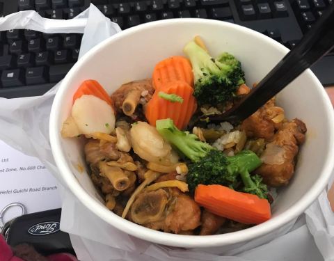 效率有待提高,等了很久,酸菜鸡块饭很难吃,怀念咖喱鸡肉饭,咖啡和沙拉不错!