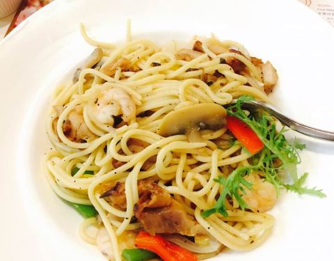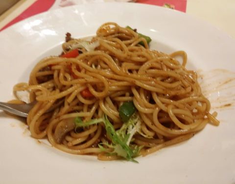 晚饭时间,排队大概10分钟!上菜速度还可以,蛮快,基本上15分钟上好了,意面和披萨味道不错,两个人份量有点多,整体服务可以