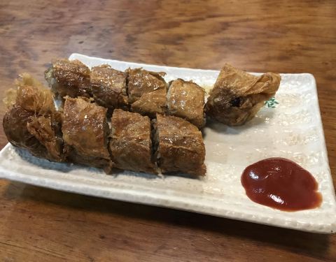 点了一份杨家鸡卷,其实是用豆腐皮包裹猪肉蔬菜等内陷,油炸以后切成小块的,稍微会觉得有点油腻,但...