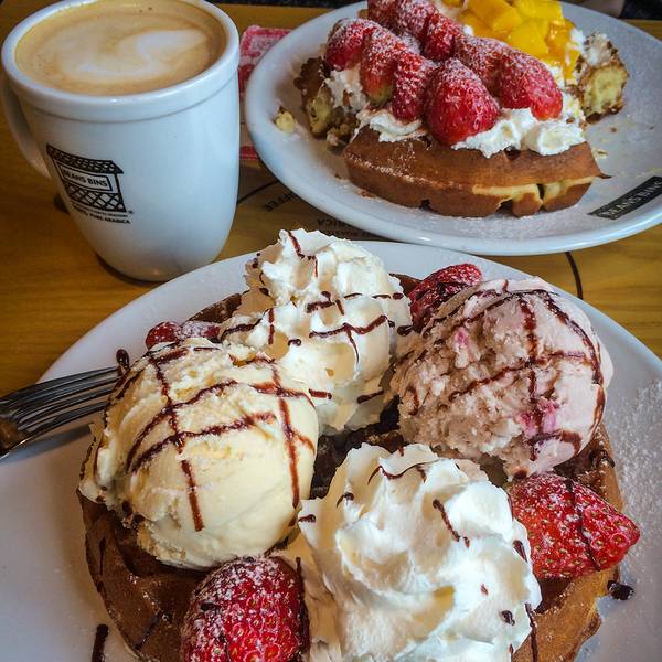 之前在网上已经听说他家草莓华夫饼的鼎鼎大名,但是看到别的,总是想问问区别是什么,结果点餐的妹纸不怎么说英语,我俩弱弱地交流了一会儿,我还是选择了“strawberry only”,然后我俩都如释重负地笑了。