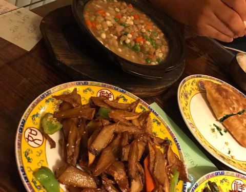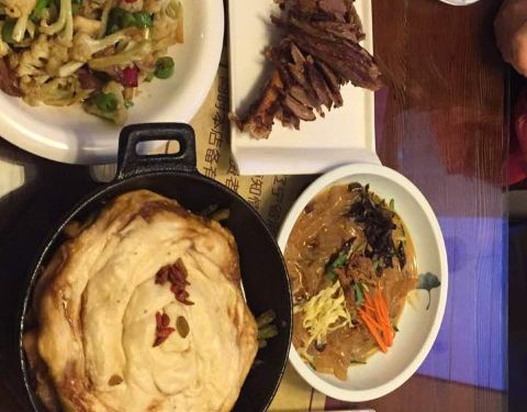 适合亲朋好友小聚,地址在三好街附近,广播电视台斜对面,西塔大冷面旁边。进门可以发现它家装修的古色古香,桌椅都是木质的,很有中国特色,整个两层楼,散桌比较多,包房很少,需要提前预定。它家的菜品非常丰富,从川菜到辽菜,甜品到海鲜。想到的菜他家基本都有,另外主食类的也很丰富:蒸饺煮饺炒饭馅饼等。最大的特色是他家菜品可以半份半价,这样即使两个人也可以多点几样菜,不用担心点多了浪费,即使半份的量也不少哦。
