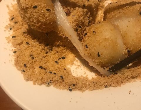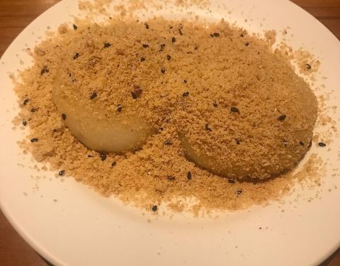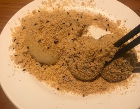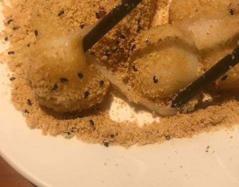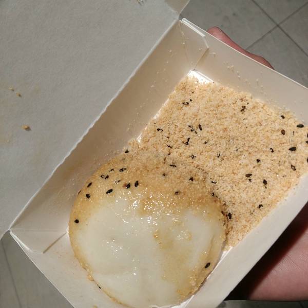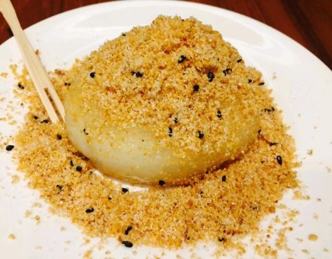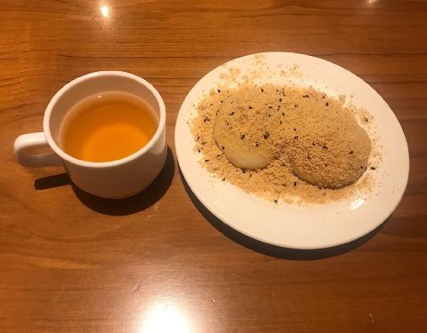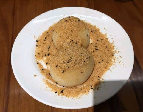 烧麻薯(80twn) 好贵哦..上周大桥头烧麻薯才50twn诶。 但是这家环境好,茶饮是送的,口碑更久远。看过好多台湾美食的杂志书刊,关于烧麻薯那一章,第一名介绍的都是这家,当然要来一探究竟啦。 蛮好的都蛮好的,我觉得大桥头的比较好吃!糖粉没有那么细腻一点,个头相较而言小了