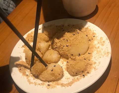 - ...沙小圆子,还有麻薯,最不好的就是这种东西一吃就饱了,夜市其他东西吃不下去了,麻薯真心容易填肚子
