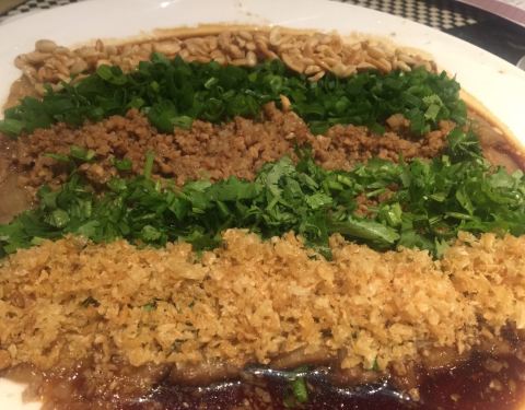 今天是广佛两地同事聚会,餐厅位于位于乐峰广场三楼,地铁沙园站出来就是,对于广佛人民来讲,交通都非常方便。格格肉,调味不错,但是今天的肉没有腌制好,肉腥味较重;芥兰偏咸,但是很嫩;燕麦椰汁软糕Q中带一点糯,爽口不粘牙;特价98元的羊排煲,羊肉还是有点膻味;鲜虾芝士焗豆腐,卖相很好,但是豆腐不够滑,要趁热吃,凉了很难下口;茄子很赞,卖相佳而且口味丰富,每个口味单吃OK,拌在一起吃也很棒;羊杂汤胡椒味偏浓,里面有点酸萝卜很开胃。
