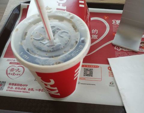 天气真的太太热了000000!下班了经过kfc讲来吃冰!手机点餐,发现惊喜-直没机会吃到的海盐冰淇淋又有了!000立马下单!再来一杯雪顶咖啡!可能时间还有点早,点完立等可取。看看这天气有多热,雪糕在店内都开始融化) (而且内心吐槽,柜台小姐姐卷得很不美) ,所以必须要立刻干掉。海盐出来其实已很久,可不知道为什么总无缘吃上一口,就为了它的颜值,一直心心念念在心里,今天得以品尝,并没有想象中的那么好,能吃到很淡很淡的咸,雪糕不够细滑,可是外层的筒皮很脆,总体来说颜值挑梁无功无过,心里安慰:总算吃过了