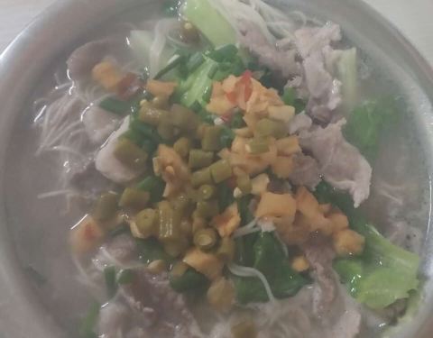 老板服务很好,绿豆粥像绿豆沙一样还有马蹄特别好。煮粉的肉也特别新鲜!赞