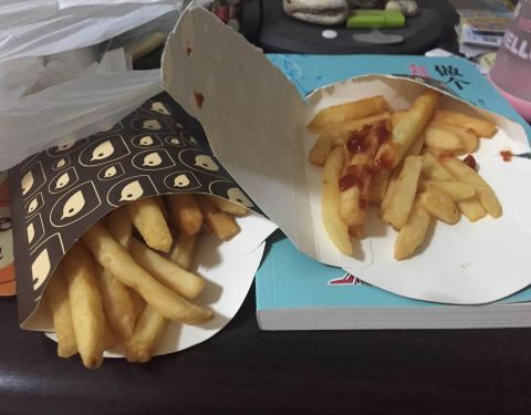 带回来就软掉了,看来不合适打包。软了就不好吃了。薯霸,分量没很多,就是比较长,比较粗吧。