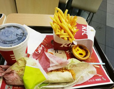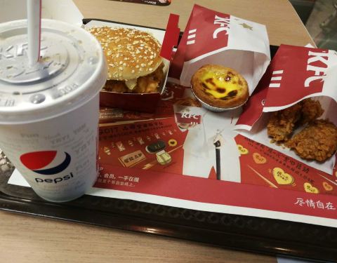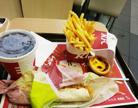 店铺地面,桌椅干净整洁(除了一只讨厌的苍蝇)不加分,店员热情服务加分;我点的是香辣鸡腿汉堡套餐:炸鸡翅新鲜出炉加分,汉堡略带温热加分,汉堡内的鸡腿外脆内嫩加分;葡挞很赞果断加分!可乐大小适中,刚刚好!加分!