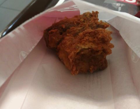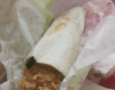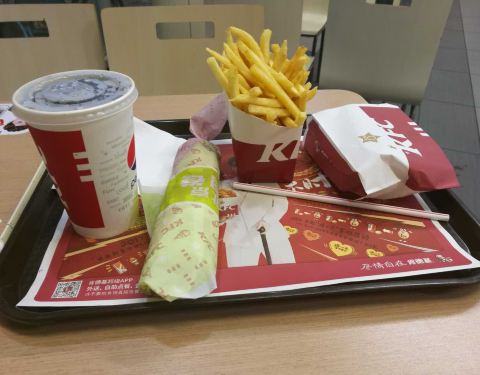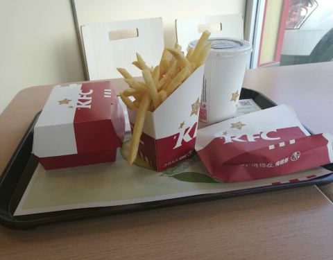 - 我点的是香辣鸡腿汉堡套餐:炸鸡翅新鲜出炉加分,汉堡略带温热加分,汉堡内的鸡腿外脆内嫩加分