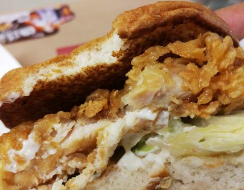 我点的是香辣鸡腿汉堡套餐:炸鸡翅新鲜出炉加分,汉堡略带温热加分,汉堡内的鸡腿外脆内嫩加分
