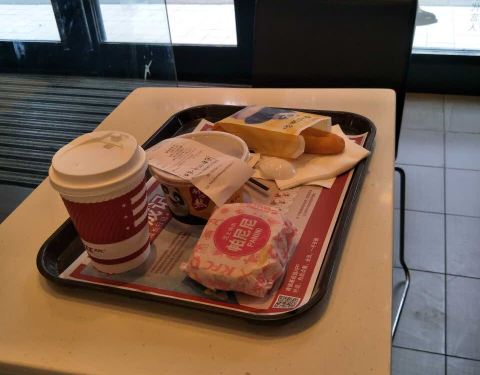 小杯可乐在夏天喝一杯还是可以的 爽爽的 外加一个鸡肉卷 味道还行 没餐巾纸 ……