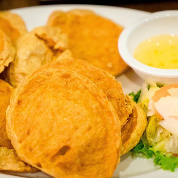 建兴酒家是一个享誉国内外的曼谷老字号餐厅,一位华人开的。在曼谷有多家分店,也是网上极富盛名的一家以海鲜为主的网红餐厅。我们把当天的午饭定在了这里,赶来的时候,门口的大叔就坐在一堆筐子中间处理海鲜,这种接地气的方式让我很有好感。咖喱蟹是店内的招牌菜,实际体验后发现咖喱蟹的确比较惊艳,其余的冬阴功汤、烤鱿鱼和虾饼这几道菜就中规中矩了,但也来的不亏。