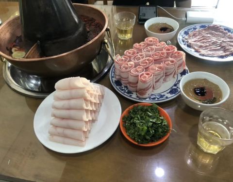 地道的老北京火锅,手切鲜羊肉立盘不散。