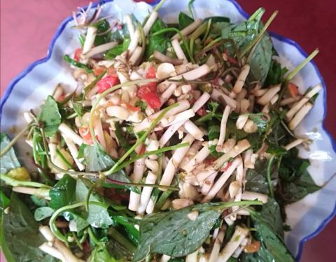 这家腌肉馆景洪市勐遮路22号,他们家餐厅比较大,门口不好停车,要开去前面的有停车带上。餐厅里的炒腌肉的确很好吃,都是家常菜,黄焖鸡就不错,还有西双版纳特产炒芭蕉花,凉拌折耳根味道都不错,鱼也很好吃。