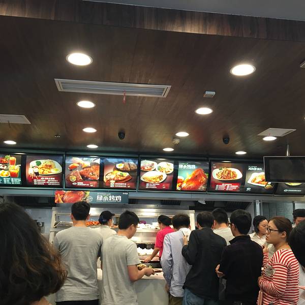 乡村基(两江幸福广场店)位于渝北区星光大道两江幸福广场内。乘坐轨道交通6号线,在光电园站下车,A2口出来,然后沿着导航往两江幸福广场直走几百米就到了。两江幸福广场是很容易发现的,是很大一个广场呢,走到广场找乡村基就更容易了,那里人多就是哪里。来这里吃饭的大部分是附近公司的员工,因为好多公司要么没有食堂,要么食堂也挤,再有就是员工喜欢到外面吃,而这附近没什么吃饭的地方,所以要工作的大家要吃一顿饱饭,这里成了他们的理想之选。所以想去这里吃饭的话,千万错开饭店,要不然你就会像我这样在这里慢慢排队啦,不过工作人员手脚还是很麻利的,所以不会排很久,排完一般还是会有一两个空位的,毕竟一直有人来,也一直有吃完的走离开嘛。乡村基嘛,中式快餐,各种盖饭套餐居多。然而来这里吃了好几次,最爱吃的还是这里的酸菜肉丝米线。里面的肉丝很嫩很滑,酸菜很好吃,就着这软软的米线,再喝一口汤,真是美味极了!