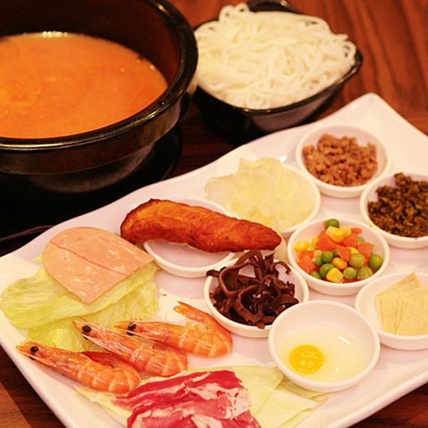 福华园过桥米线是老字号过桥米线了。汤是高汤,鲜美,菜啊,肉啊,米线一锅放入滚烫的汤里,特别赞。