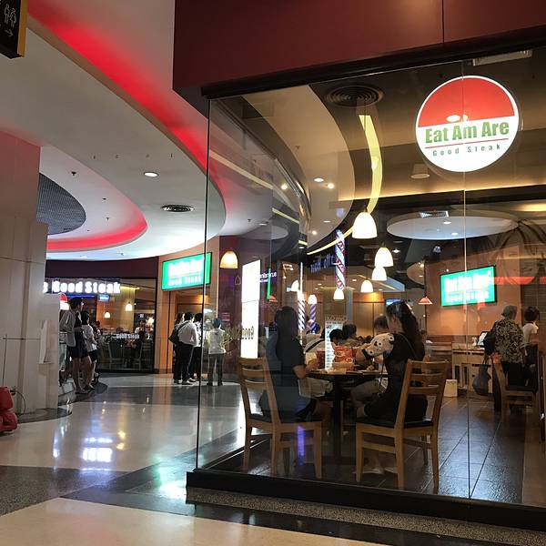 Eat Am Are早上收拾行李,午饭就到BTS站旁一个商场解决,本来打算去之前几次遇到没吃的Shabushi,但是评价一般于是选了排满泰国人的Eat Am Are餐厅取号,600฿点了两份牛排,呆霖说沙拉好吃,看着不多吃起来很饱...