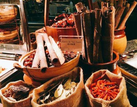 湖里万达广场旁边的朗豪酒店从开业起就备受关注,因为软2这一片实在吃的太少了。现在正值两周岁生日---自助餐厅华丽转身了。听说铁板烧的师傅是从花潮高新挖来的。有菲律宾的美女晚上8点左右在做液氮爆米花,液氨冰淇淋的现场表演,看她这么美丽,我们都忍不住调戏下,让她表演给我们看,想拍照,无奈旁边GG说,工作人员上班时候不能吃东西,55555,就偷偷吃了一下我手慢还没有拍到,那个伤心啊。(液氮冰淇淋,吃的人把它含入嘴里,会向外吐气,哈哈,一言不合就喷气的感觉挺好玩的)。 现在请跟着我的脚步来看看,现在朗豪的自助餐都有些什么,虽然不是东南亚主题节,但也有不少东南亚的菜系。看这么多的香料。。。 热菜区有新加坡肉骨茶,娘惹鱼头,沙嗲肉串等等,让你一次吃个够。BBQ的烤虾,鱿鱼,鸡翅等等每个都好诱人。还可以烫青菜,花蛤等煮面吃,热乎乎的适合老人小孩。 海鲜区:三文鱼,北极贝等,还有很大只的帝王蟹,不知吃身体还是脚,纠结了好一阵,看着不起眼的生蚝,让师傅帮忙切了块,真是小确幸,新鲜完美极了。以至于我推荐小伙伴吃,大家都连二连三的又去取,可能都被我们拿光了。 铁板烧区:有羊排,牛排,龙利鱼,黄翅鱼?等品种,还有乌冬面,虾,想吃啥可以让帮忙弄啥,或者时不时路过看看有啥需要的,直接拿走。扇贝也是极好的。 饮料区:有鲜榨哈密瓜汁,西瓜汁等几款,还有红酒可以一品。 甜品区: 第一反应灯光太暧昧了,不适合拍照。可是谁像我们这样一直验毒得啊,实验证明,女人真的有两个胃,这边喊好撑了,吃不下了,那边还是一个两个三个的,拿了满满一盘甜品过来,真诚推荐榴莲蛋糕,芒果布丁,提拉米苏。 水果沙拉区:有米蕉,李子,龙眼等水果,值得推荐的是菠萝菠萝蜜,都是现切的非常新鲜,冰镇下口感更佳。旁边有儿童玩乐区,今天好像没有开放,也是方便多了。来看看我们的战利品,真的做到扶墙而出了。。。