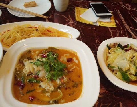 - 酸汤肥牛椒麻鱼味道很好,烤羊肉串烤羊肉串蛮好吃的肥瘦结合,吃起来一点都不腻,大盘鸡味道也是非常...
