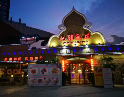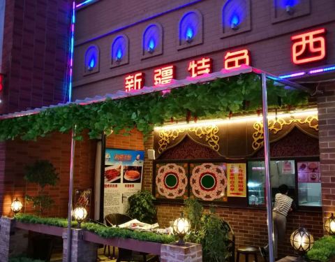 新疆特色西域美食的红色灯光较能吸引人,门口大牌子上写的特价菜很有特色,点的套餐很实惠,中盘鸡香囊分量很足,酸汤肥牛椒麻鱼味道很好,烤羊肉串烤羊肉串蛮好吃的肥瘦结合,吃起来一点都不腻,大盘鸡味道也是非常棒,土豆很多肉也不少,总之性价比很高,值得推荐!