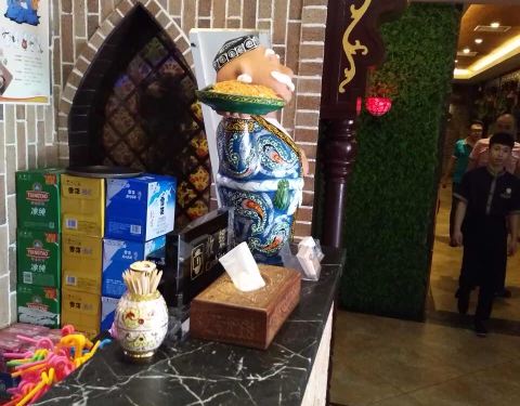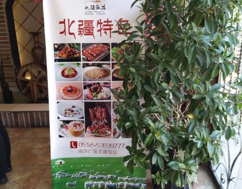 太仓的北疆饭店在人民路上的南洋广场里,这是太仓的中心地段,所以北疆饭店也是特别吸引太仓人去品尝的西北风味的餐厅,这里的手抓饭、馕饼、羊骨、牛骨等都是招牌菜。