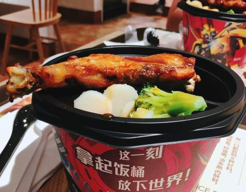 消费25元!拿起饭桶,放下世界,这句广告词特别赞!看起来量很足,尤其是大鸡腿!味道很赞,而且非常入味儿,肉肉很劲道,还有配鲜蔬汤或者可乐,可以自己自行选择,套上手套可以尽情的开吃啦!