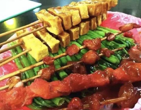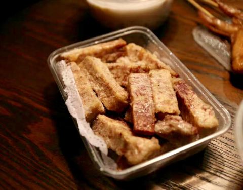 他家反沙芋头是杂粮界相当神奇的一道发明,这道菜趁热乎的时候是最美味的,香脆的糖衣包裹着酥软的芋头,咔嚓脆一口,丰富的口感层次在口腔里得到最完美的融合。此时再来几串炸炸,炒饼甜品炸物三合一即是天作之合