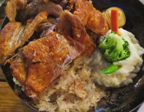 很有情调的一家德国菜餐厅,德国烤猪肘是必点,外脆里嫩又有嚼劲,招牌特色香肠也是不容错过的美味,会让你连边上的配菜也一扫而光。饭后来上一份布丁是最幸福的事情,浓浓的草莓酱淋在上面,酸甜可口。
