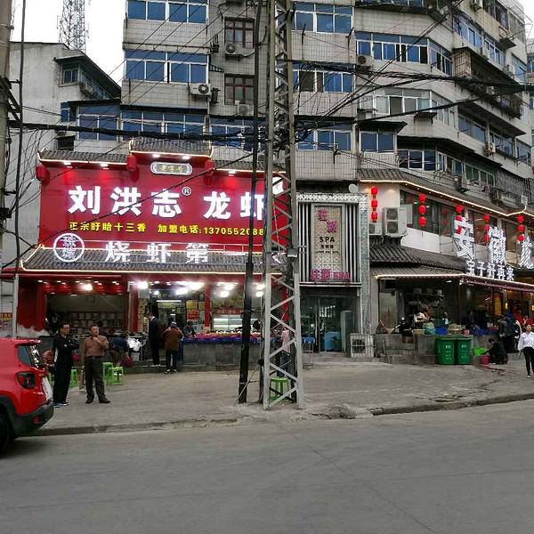 这是龙虾一条街呀!好多都是龙虾,靠近回民街。在附近的新世纪酒店住的,距离几十米,来这边看看。