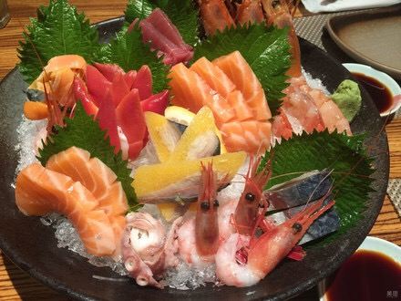 只是冲着传说中义乌最好的日本料理的评论去的,上的第一个海鲜大拼盘着着实实的被震到了,摆盘很漂亮,鱼片也非常的新鲜,特别是甜虾入口清甜嫰滑,不由点了十二个赞。然而大概是一开始的期许被海鲜拼盘拉的太高...只是冲着传说中义乌最好的日本料理的评论去的,上的第一个海鲜大拼盘着着实实的被震到了,摆盘很漂亮,鱼片也非常的新鲜,特别是甜虾入口清甜嫰滑,不由点了十二个赞。然而大概是一开始的期许被海鲜拼盘拉的太高了,后面的几道菜便有些失望,法式鹅肝太腻没有入口即化爽快感,点的烤牛肉串上来的时候是被雷到了,几乎就是牛排串啊,三个人面对九块牛肋面面相觑,为了不浪费只好把海鲜火锅给退了...整体评价服务非常好,菜品味道不算差,食材新鲜,上菜速度挺好的,价格不算贵,小资情调值得推荐。特别推荐海鲜大拼盘、雪蟹