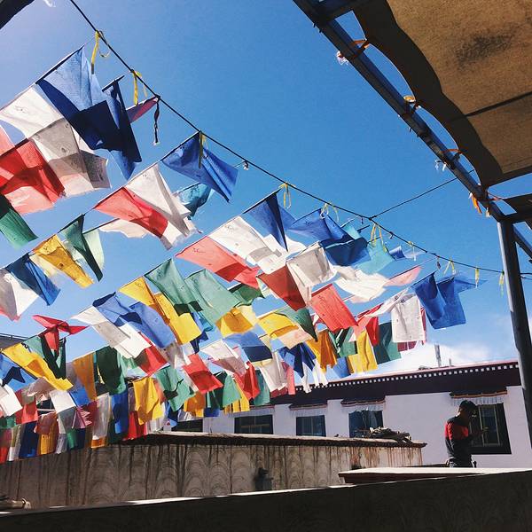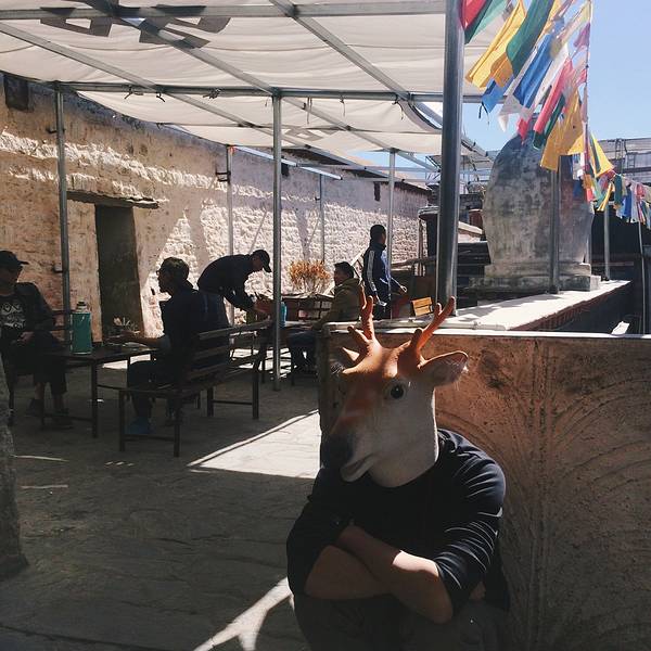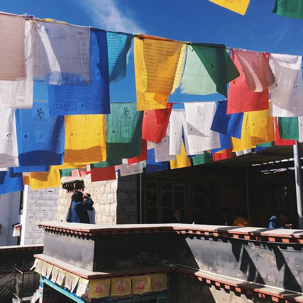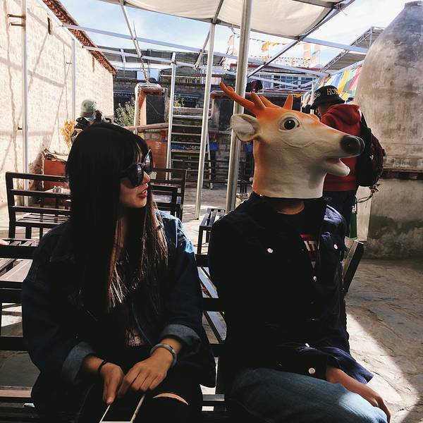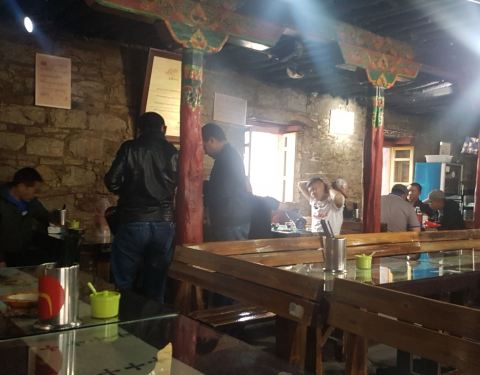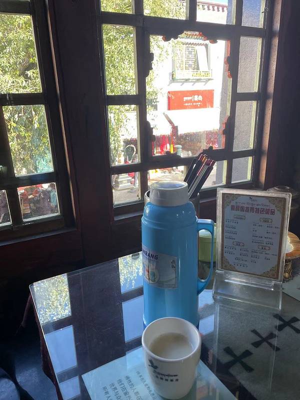 着重介绍一个餐馆:喜鹊阁。喜鹊阁在八廓街南街一个院儿里(街边有招牌)。进去院儿上二楼点东西,二楼也可以喝茶吃东西,但三楼天台阳光充足经幡招展,可以结交朋友搭讪妹子也可以发呆看书玩手机或者打牌斗地主,来这里的大多是藏漂儿游客相对较少。这里的东西价格算公道,奶茶甜茶酥油茶都是五块一暖瓶,而且食物虽然是藏餐但都已经偏内地口味。相比光明这里更加安逸一些,相比玛吉阿米这里更加实惠接地气一些。
