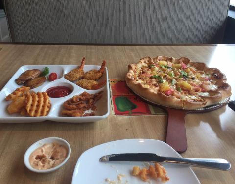 味道不错,吃了南美风情肉香荟pizza和酥皮奶油蛤蜊汤,超值人气小吃拼盘