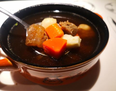 - 这道汤的口感很中式,吃完让我有些后悔点了,不是不好喝,而是料太实足了,让我担心会吃不下之后的餐食
