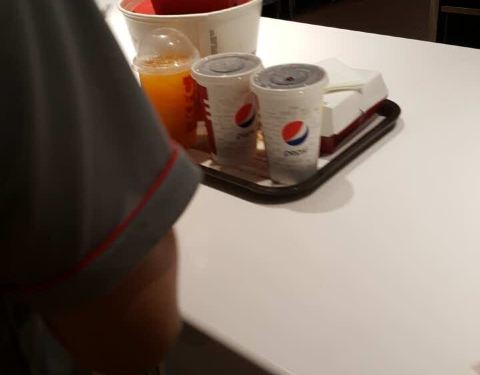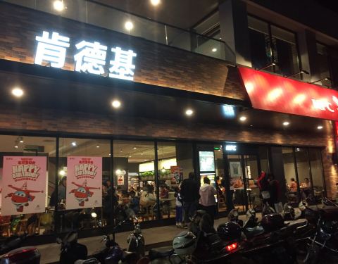 在县城中心散步时经过这家 KFC, 门口仃车场仃满了汽车和摩托车。从玻璃窗往内看,里面都是客人,所以桌子都坐满了,估计排队点餐也要花15分钟,本来是想买雪糕新地,结果什么都没买。