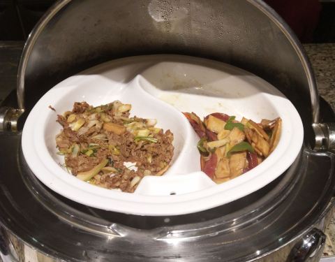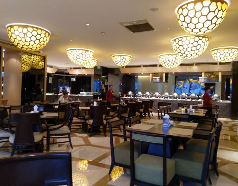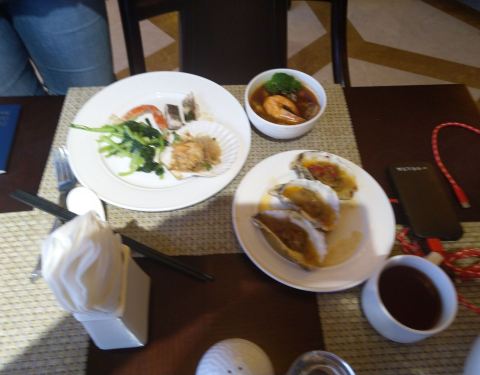 贵宾楼酒店一楼的餐厅,晚上一般都是自助餐为主,价格倒是不贵98元一位。食材感觉比较一般像生蚝、三文鱼、小鲳鱼等海鲜放在冰箱时间有些长了不能说不新鲜不过口味差了点。其他食材还可以水饺不错的,还有小火锅不过牛羊肉也普通。服务态度倒是不错的,对客户要求都能及时回应,还是体现大宾馆水准。